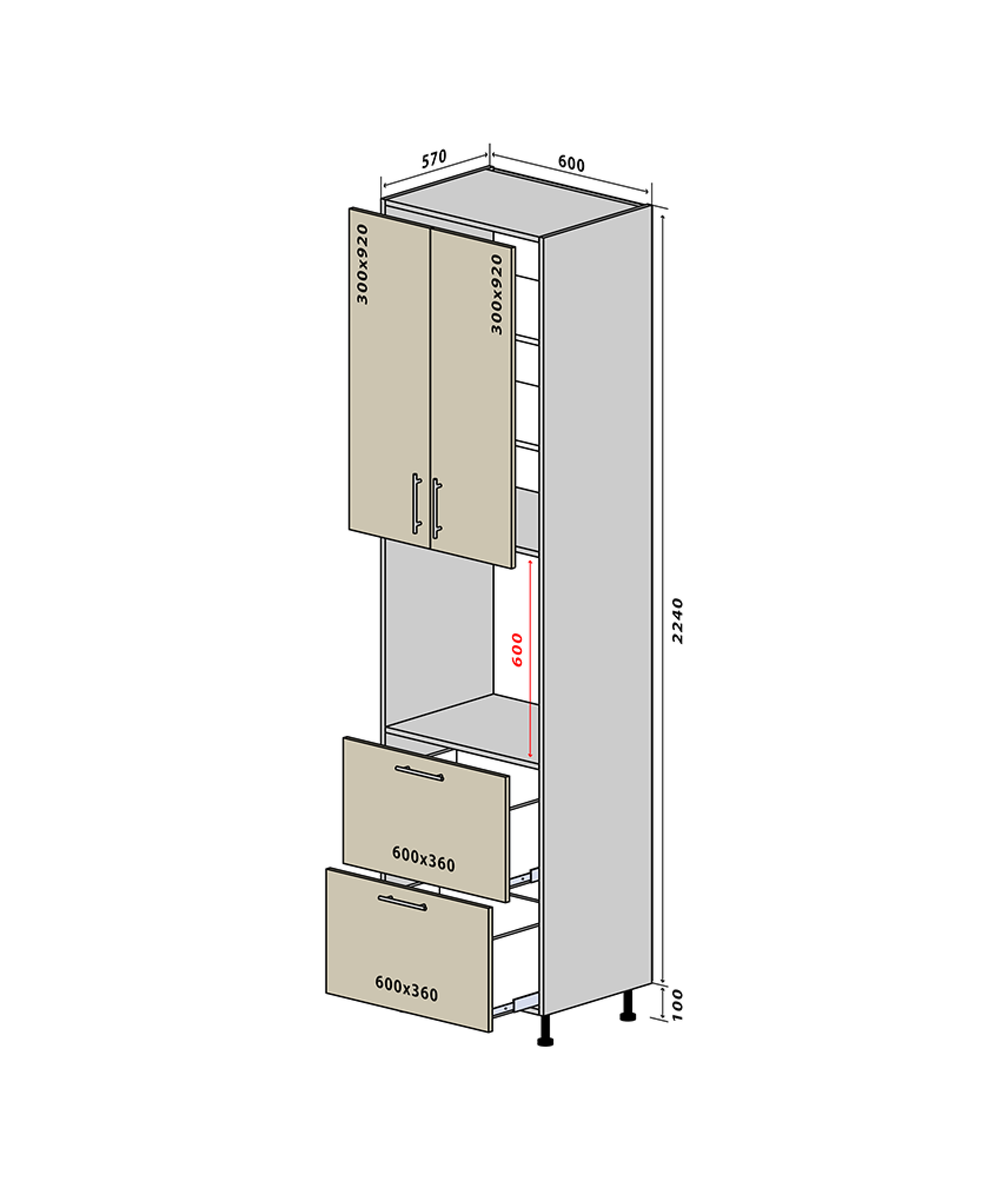 №21 Пенал нижній шухляди 60 Люкс RODOS
