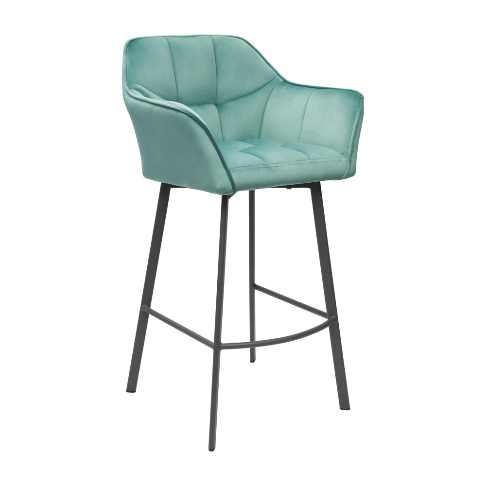 Каркас стільця виготовлений із міцного металу, покритого стійкою порошковою фарбою, що захищає від корозії та подряпин. Сидіння виконане з м’якого, приємного на дотик матеріалу — тканини або велюру високої щільності, що зберігає форму навіть після тривалого використання. Оббивка легко очищується, не вигоряє на сонці та має підвищену зносостійкість. Стандартна опора бар KR.