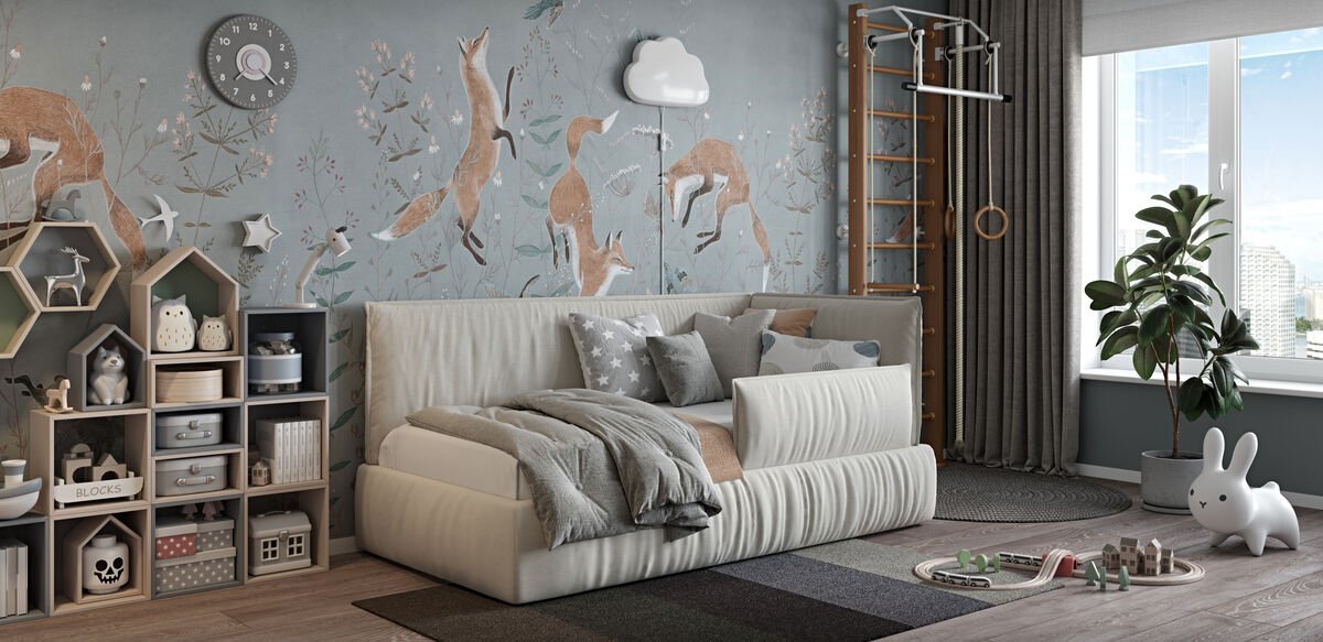 Ліжко Asti доступне у кількох варіантах тканин і кольорових рішень – від спокійних пастельних до яскравих відтінків. Це дає змогу підібрати модель під індивідуальний смак та інтер’єр дитячої кімнати.