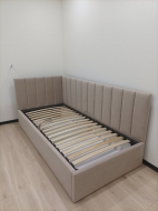 Ліжко оснащене ортопедичною основою з ламелями та пружинним підйомним механізмом, що забезпечує зручний доступ до місткого короба для зберігання речей. Це ідеальне рішення для оптимізації простору та підтримання порядку в кімнаті.