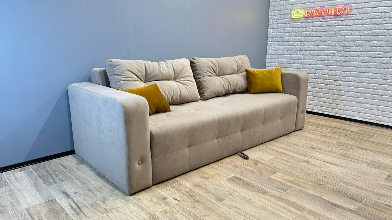- Надійність і довговічність. Завдяки простій конструкції, без складних механізмів, диван стійкий до зношування та слугуватиме довгі роки.