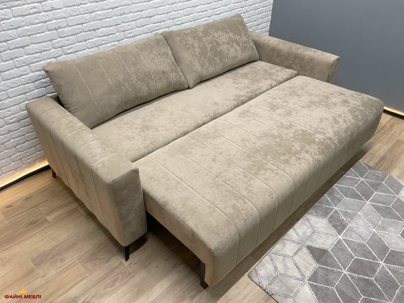 Цей механізм дозволяє швидко й без зайвих зусиль трансформувати диван у комфортне спальне місце. Для розкладання необхідно висунути сидіння вперед, після чого спинка плавно опускається на утворений простір. Завдяки такій конструкції процес трансформації відбувається легко та безшумно, а поверхня для сну залишається рівною та зручною.