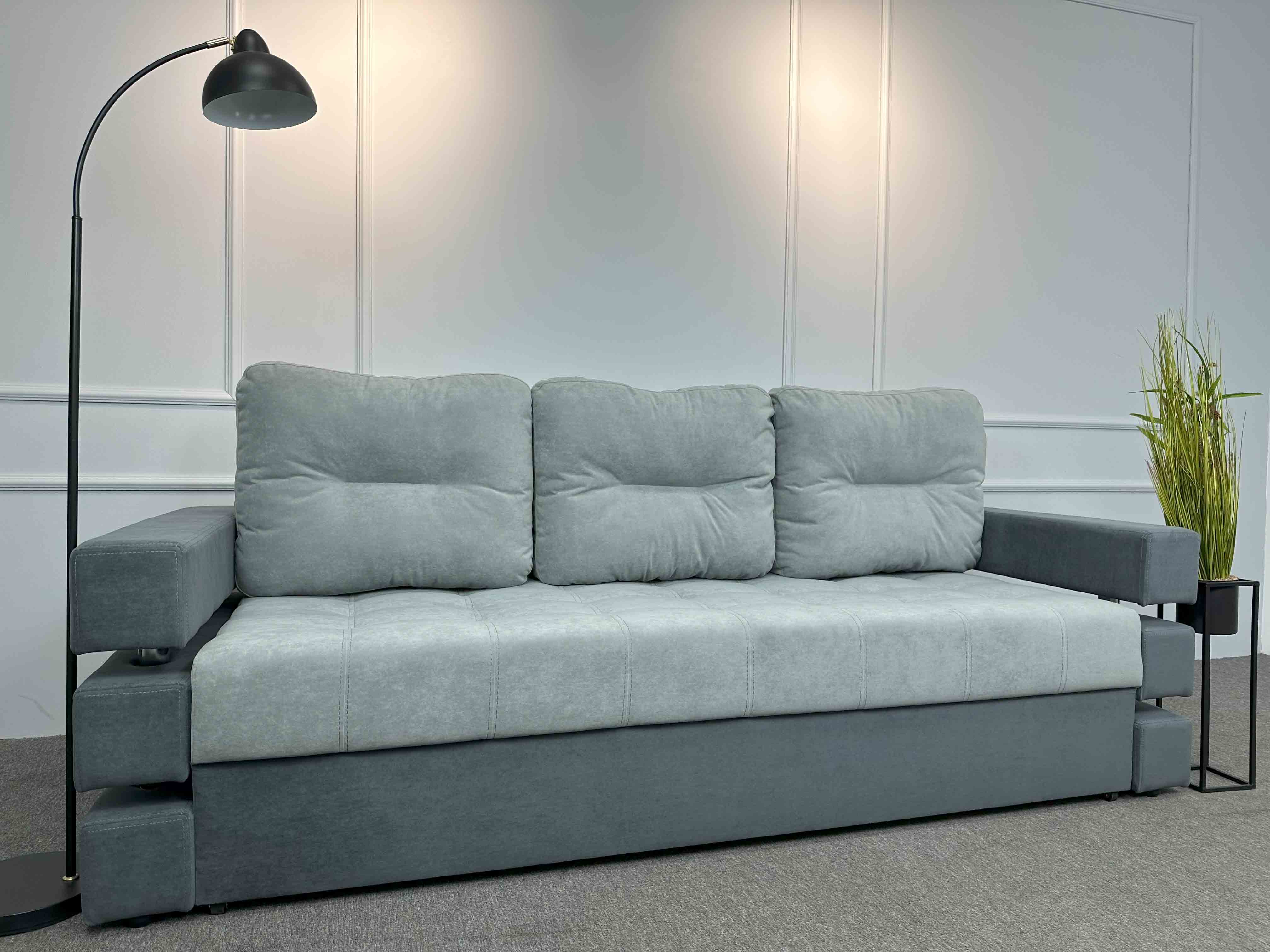 - Плюси прямого дивана - немає стику на спальному місці, займає менше місця в кімнаті та краще підходить для малих та середніх кімнат та приємна ціна.