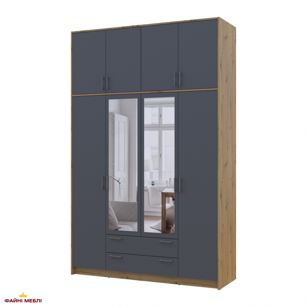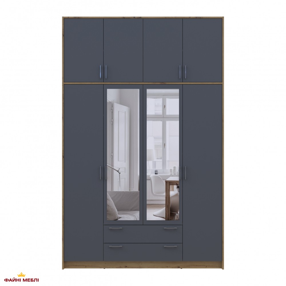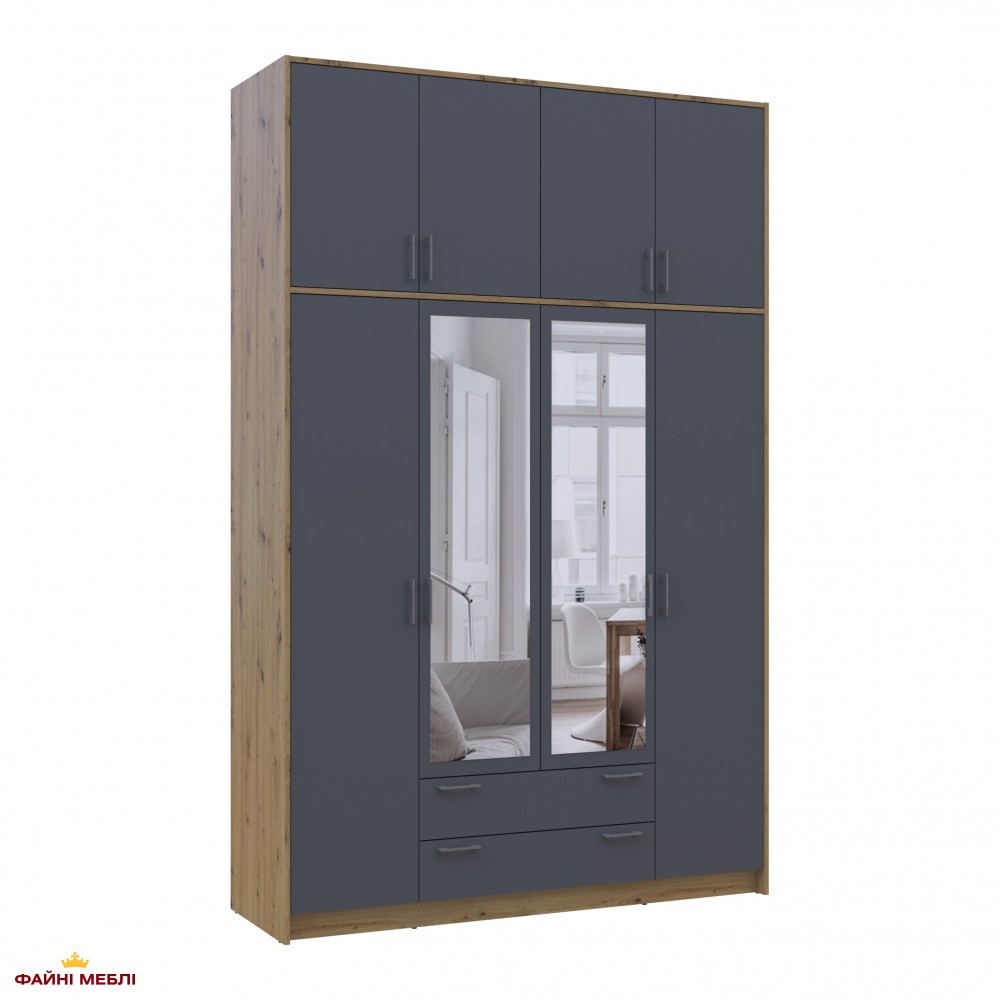 Шафа для одягу Дорос Ронді графіт з високою антресолею та дзеркалом 4-дверна 160 см