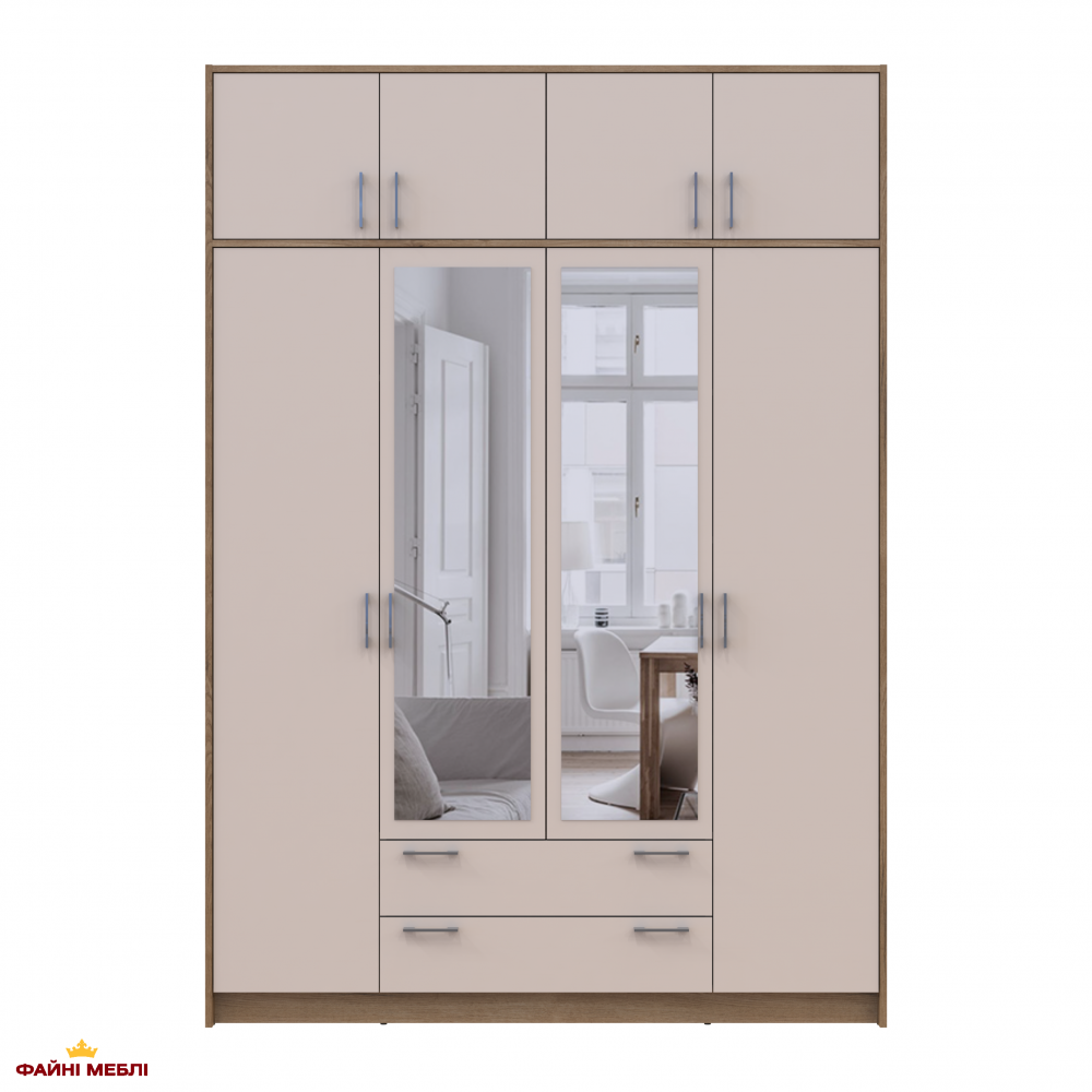 Шафа для одягу Дорос Ронді кашемір з дзеркалом та антресолею 4-дверна 160 см