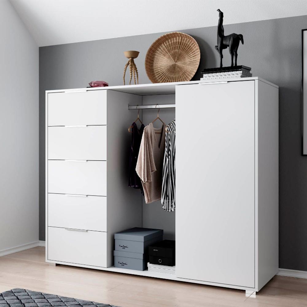П’ять шухляд, секція з полицями та відкрите відділення зі штангою дозволяють систематизувати гардероб