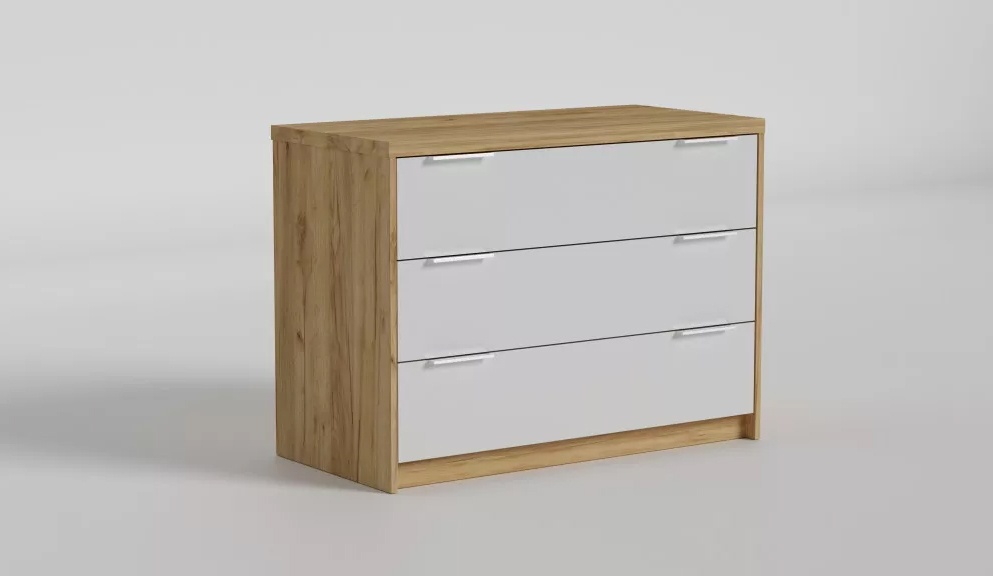 Комод виготовлений з ламінованої ДСП для корпусу та фарбованої глянцевої ДСП для фасадів, що забезпечує поєднання зносостійкості, практичності та сучасного вигляду. Поверхні легко очищуються та зберігають охайність у щоденному користуванні. Модель представлена в декількох поєднаннях кольорів: Білий діамант, Горіх ліон світлий, Дуб урбан ойстер, Дуб експресив бронзовий, Бароко рістретто, Бароко бурштиновий, Антрацит, Дуб сонома, Дуб крафт золотий, Дуб сонома трюфель, Дуб крафт білий, Венге магія, Біле дерево, що дозволяє підібрати варіант під сучасний інтер’єр з різною кольоровою гамою. Висувні шухляди оснащені телескопічними направляючими з доводчиками для плавного та тихого ходу. Металеві профільні ручки з металу підкреслюють дизайнерську стриманість моделі та зручні у повсякденному використанні. Комплектується інструкцією та повним набором фурнітури для монтажу.