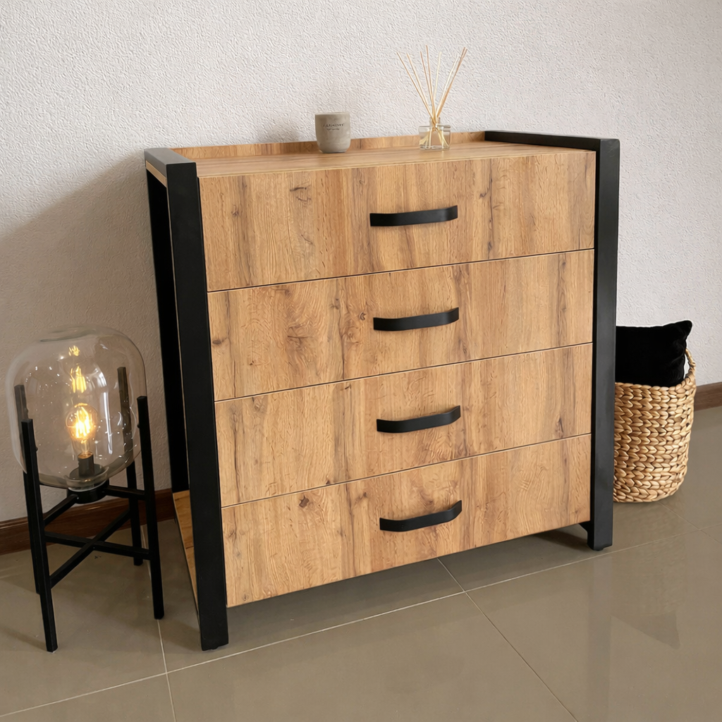 Комод LOFT 4Ш Дуб Сонома / Чорний мат MebliRoMax