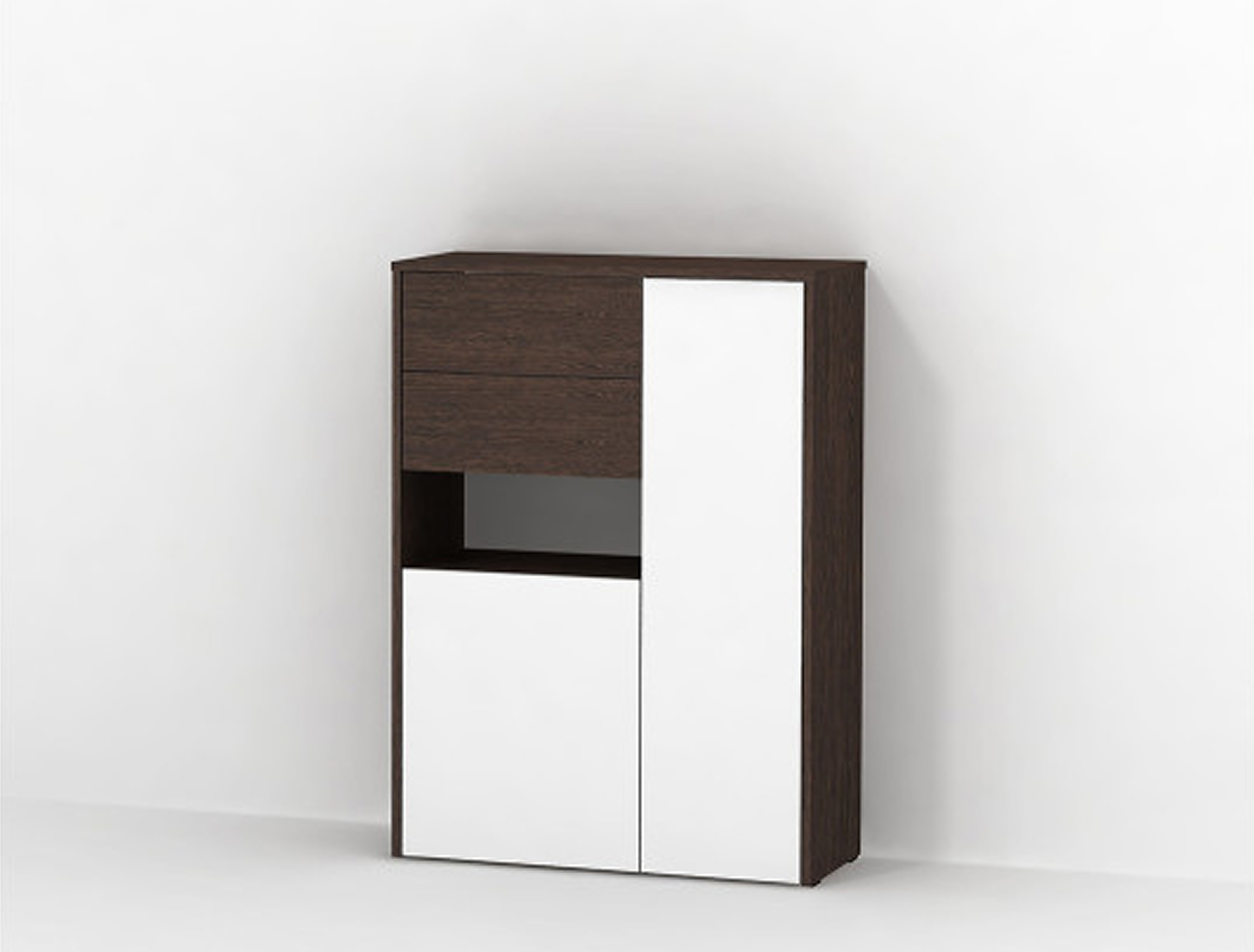 Шухляди, закриті секції та відкрита ніша забезпечують зручну організацію речей.