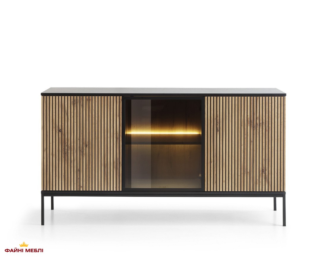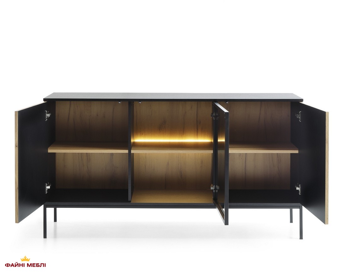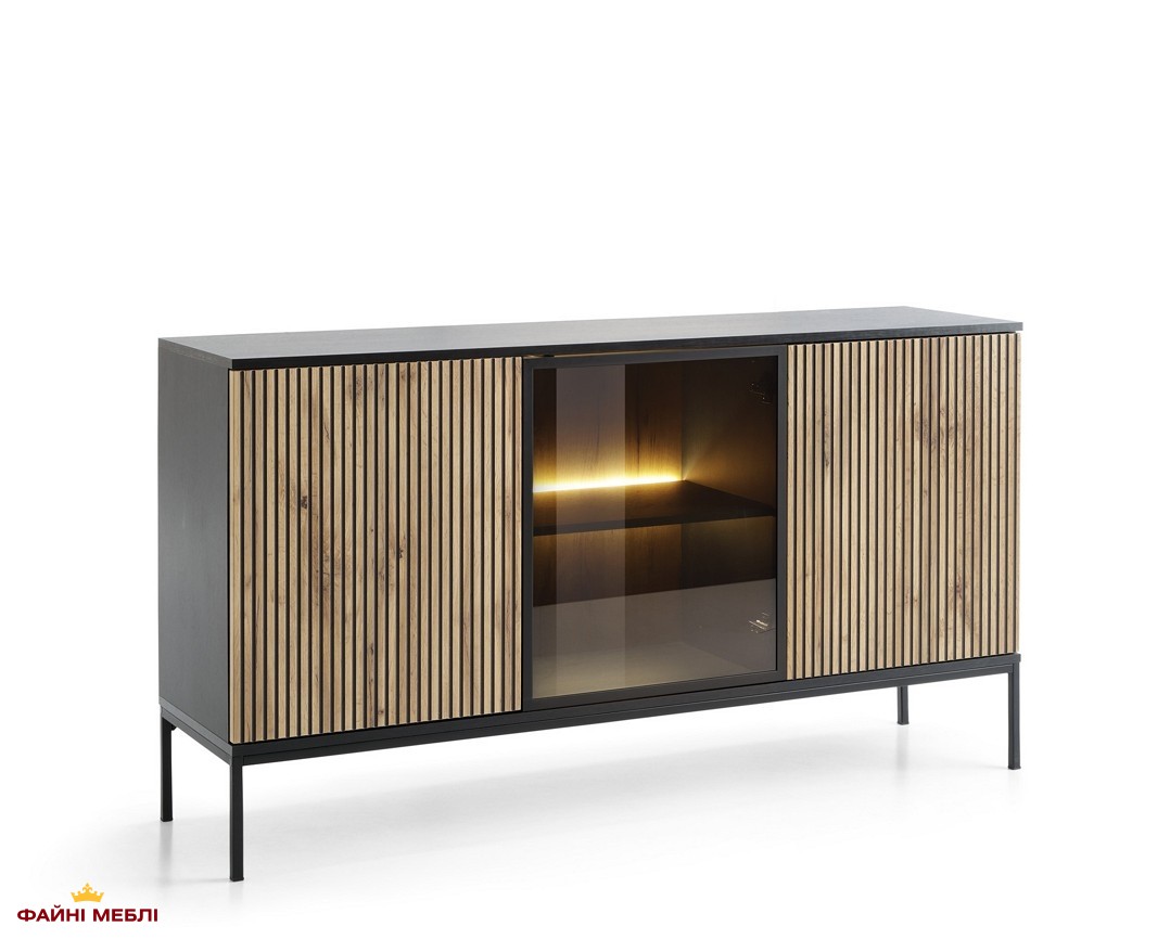 Комод Сенто / Sento K154 з підсвіткою Чорний/дуб вотан Perfect Home Ш153хВ83хГ39 см.