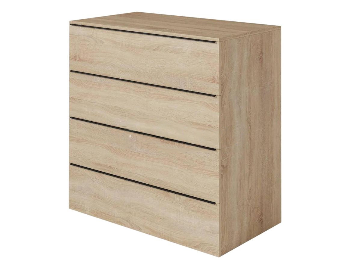 Комод виготовлений з ламінованої ДСП, що забезпечує міцність конструкції, стабільність форми та зручність у повсякденному догляді. Однотонне виконання у відтінку Дуб сонома передає натуральну текстуру дерева, додаючи інтер’єру тепла й світла. Торці оброблені крайкою 2 мм, яка підвищує стійкість до механічних пошкоджень і подовжує термін служби виробу. Висувні елементи оснащені телескопічними направляючими, що гарантують плавний і тихий хід шухляд навіть при повному навантаженні. Відсутність зовнішніх ручок підтримує чистоту фасадів і зберігає сучасний лаконічний вигляд моделі. Комплектується інструкцією та повним набором фурнітури для монтажу.