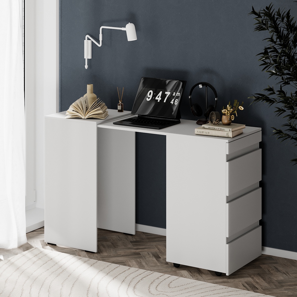 Комод-трансформер “Molli” – це рішення для оптимізації простору та зручнішого використання меблів. Завдяки простому та безшумному механізму трансформації він легко перетворюється на стіл, надаючи вам додатковий робочий простір. Компактний, зручний та бездоганний для сучасних приміщень.