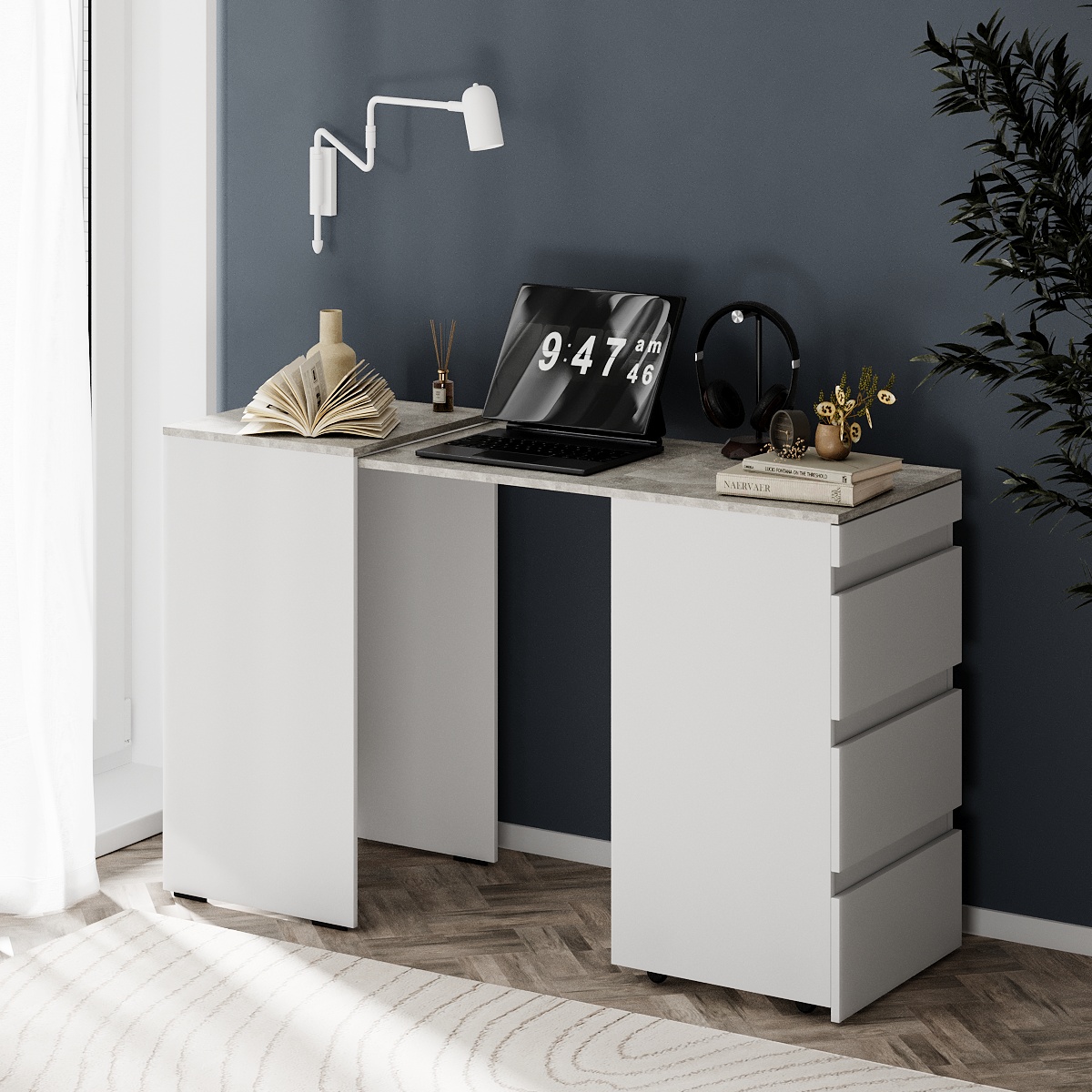 Комод-трансформер “Molli” – це рішення для оптимізації простору та зручнішого використання меблів. Завдяки простому та безшумному механізму трансформації він легко перетворюється на стіл, надаючи вам додатковий робочий простір. Компактний, зручний та бездоганний для сучасних приміщень.