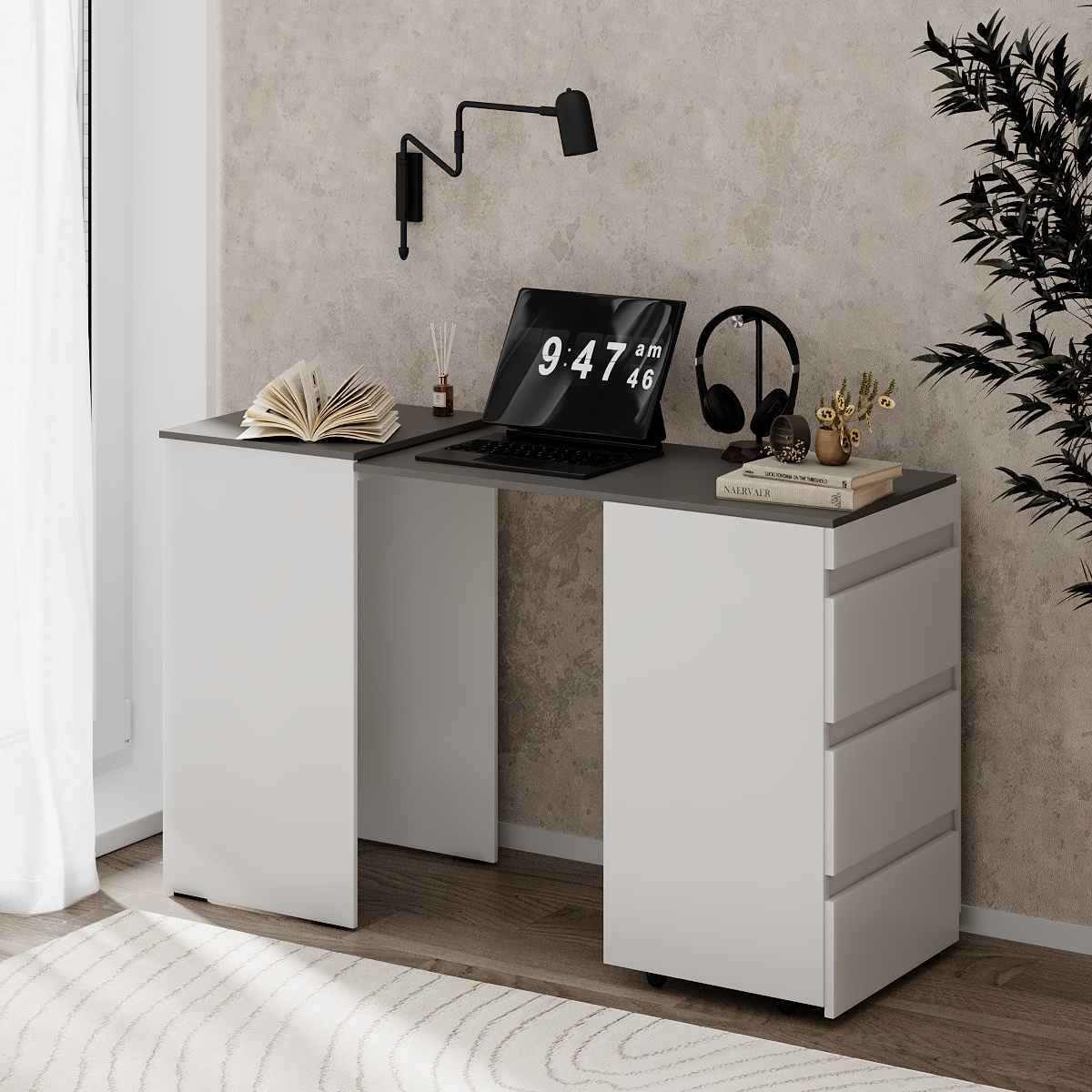 Комод-трансформер “Molli” – це рішення для оптимізації простору та зручнішого використання меблів. Завдяки простому та безшумному механізму трансформації він легко перетворюється на стіл, надаючи вам додатковий робочий простір. Компактний, зручний та бездоганний для сучасних приміщень.