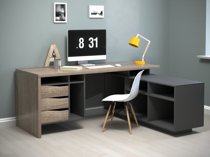 Комп'ютерний стіл Connect 1 Інтарсіо Правий/Лівий Дуб Сонома Трюфель/Антрацит 190 см