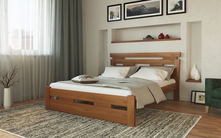 Бук - деревина бука є цінною породою деревини. Вона відрізняється твердістю і легко піддається обробці. Ліжка з бука не скриплять і не тріскаються. Його структура сподобається творчим особистостям, які вміють розбиратися в мистецтві. Ліжко з цієї деревини подарує Вам відчуття легкості, польоту і бажання починати новий день зі свіжими ідеями. Бук - дуже тверда деревина, тому подряпати чи зробити вм'ятину на ліжку з бука буде дуже важко.