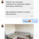 - Маєте можливість завітати у наш магазин?- Обов’язково завітайте, адже ви зможете ознайомитись з доступним асортиментом тканин, посидіти на дивані, та оцінити його вживу.
