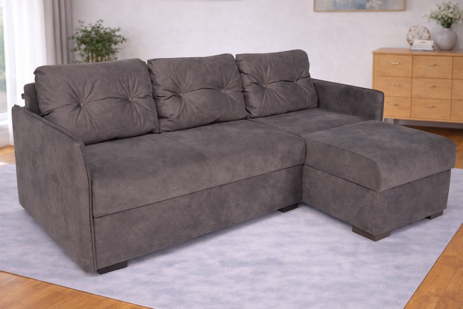 - Плюси прямого дивана - немає стику на спальному місці, займає менше місця в кімнаті та краще підходить для малих та середніх кімнат та приємна ціна.