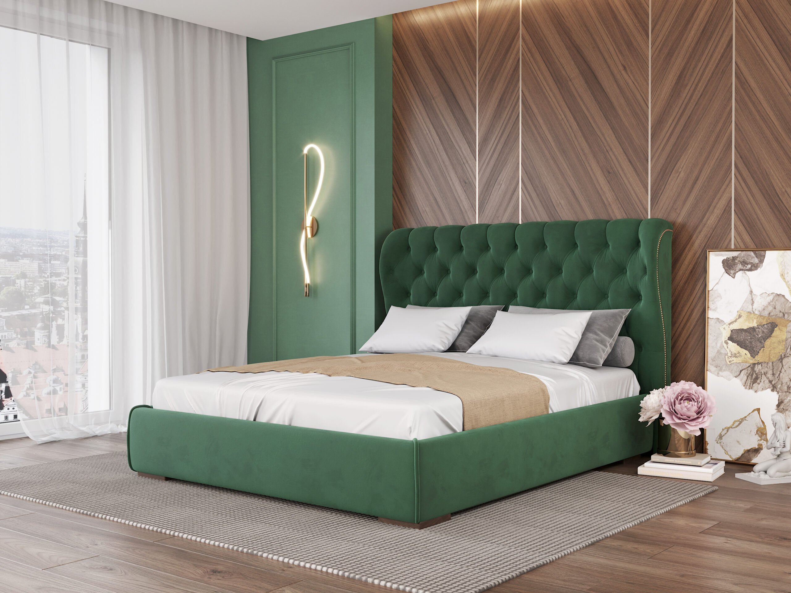 Для просторих кімнат чудово підійдуть моделі з масивним узголів’ям або декоративними елементами — вони стануть акцентом інтер'єру.