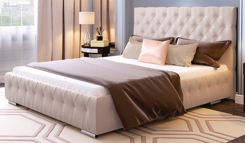 Для просторих кімнат чудово підійдуть моделі з масивним узголів’ям або декоративними елементами — вони стануть акцентом інтер'єру.