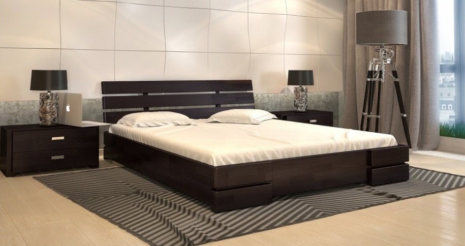 Для просторих кімнат чудово підійдуть моделі з масивним узголів’ям або декоративними елементами — вони стануть акцентом інтер'єру.
