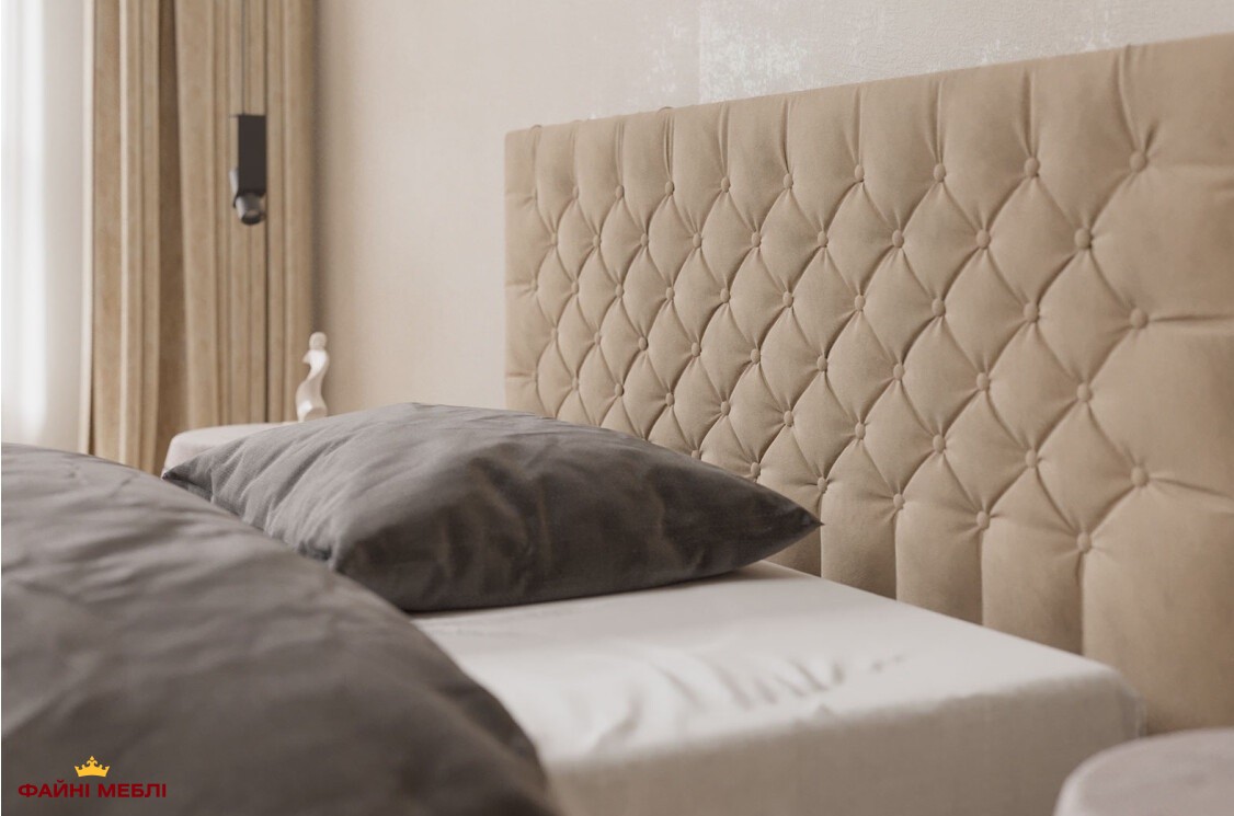 Для просторих кімнат чудово підійдуть моделі з масивним узголів’ям або декоративними елементами — вони стануть акцентом інтер'єру.