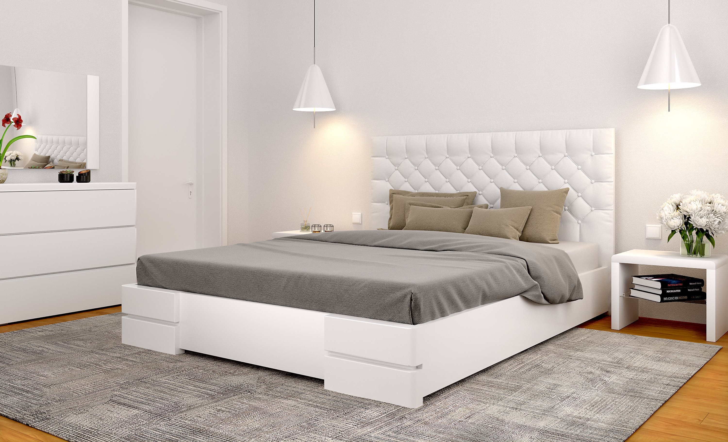 Ліжко дерев'яне з м'якою вставкою ArborDrev Камелія квадрат з підйомним механізмом та нішею для білизни Сосна / Бук Білий