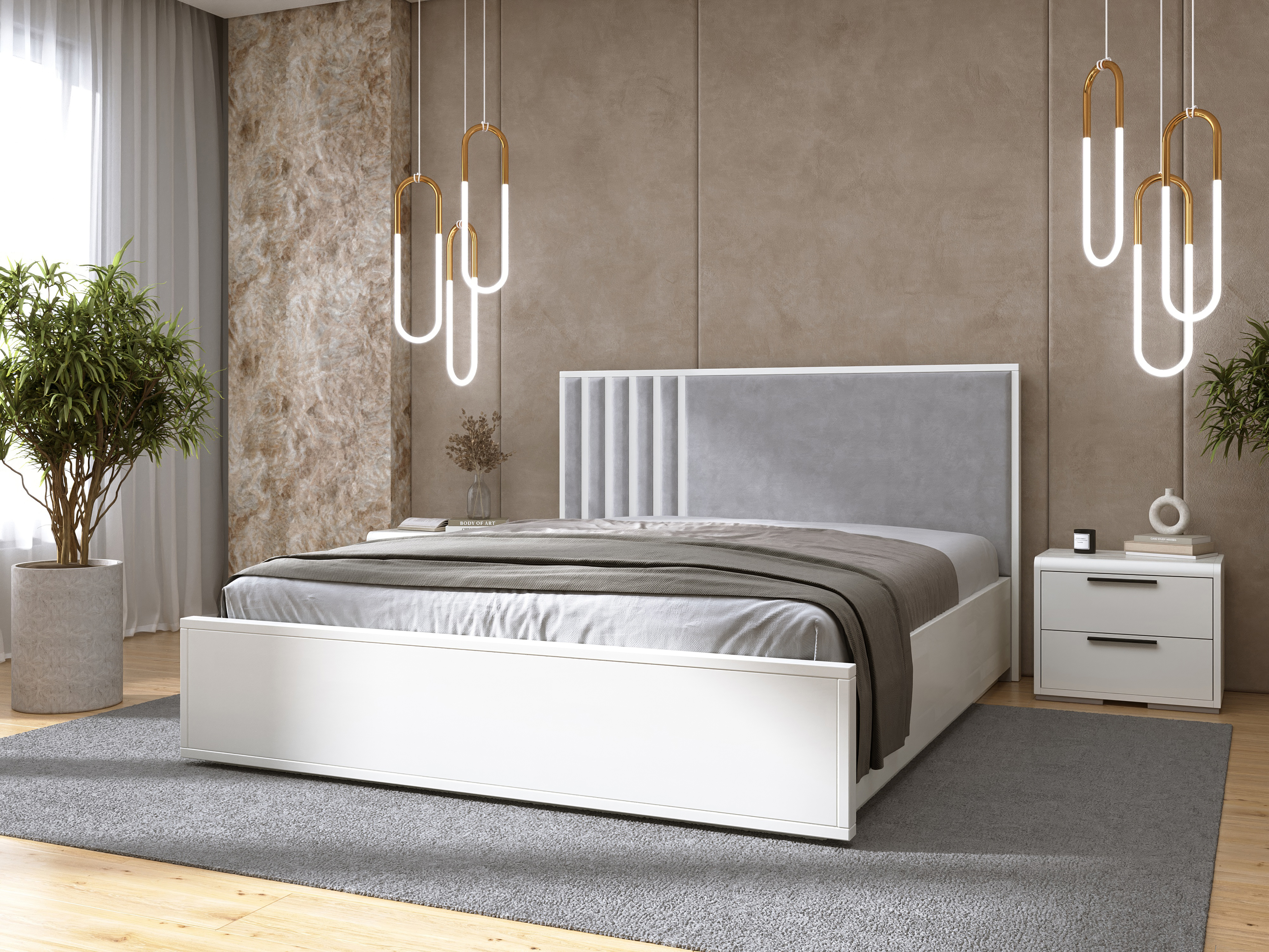 Ліжко Лаундж 3 з підйомним механізмом — це вдале поєднання стриманої елегантності, сучасного дизайну та практичності. Завдяки м’якому узголів’ю з вертикальною прострочкою модель виглядає стильно та вишукано, створюючи атмосферу комфорту у спальні. Лаконічні форми та нейтральні кольори дозволяють легко поєднувати це ліжко з різними інтер’єрними рішеннями. Підйомний механізм забезпечує швидкий і легкий доступ до місткої ніші для зберігання — ідеального місця для білизни, подушок або сезонного одягу. Міцна основа гарантує довговічність і стабільність, а якісні матеріали забезпечують зручний сон щоночі. Лаундж 3 — це вибір для тих, хто хоче поєднати естетику, комфорт і функціональність у кожному квадратному метрі.