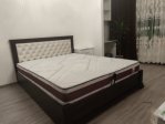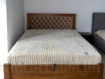 - Ліжко оснащене м’яким узголів’ям, виконаним у техніці каретної стяжки, яке додає візуального шарму та забезпечує комфортну підтримку для спини, коли ви читаєте або відпочиваєте перед сном.