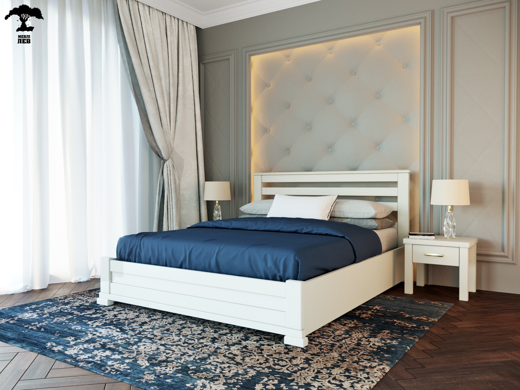 Ліжко дерев'яне Лев Лорд з підйомним механізмом і нішею для білизни масив Бук Білий