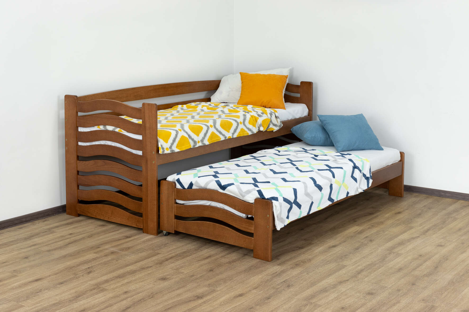 Дві букові шухляди, усі шухляди на роликах незалежно від моделі ліжка. Корпус та фасад виконані з масиву буку, днище виконане з фанери, додаткове місце для зберігання. Додаткове місце для зберігання, яким зручно користуватись, завдяки шухлядам на роликах.