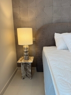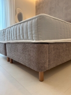 - Ви отримаєте сучасне ліжко з витонченими деталями — дерев’яними ніжками та м’яким узголів’ям, що створює приємну атмосферу в спальні.