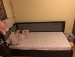 Ліжко має стояти на рівній поверхні, в сухому приміщенні з оптимальним рівнем вологості. Уникайте розміщення поруч із обігрівачами або під прямими сонячними променями — це може пошкодити оббивку та матеріали.
