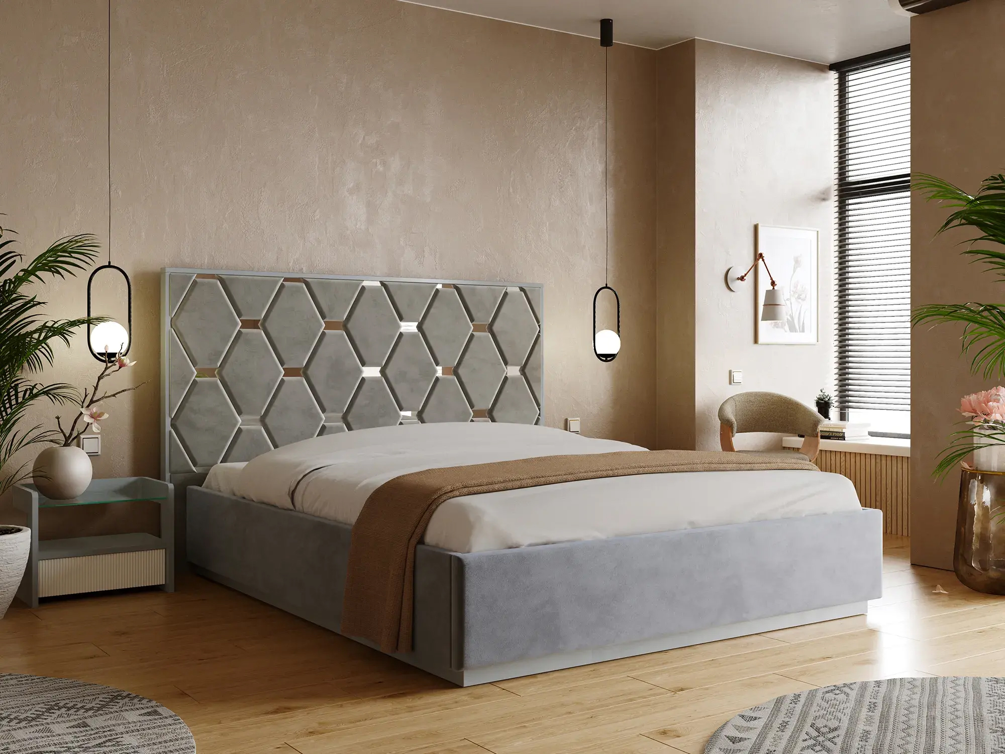 - Ви отримаєте стильне ліжко з високим узголів’ям, яке додає спальні виразності та затишку.