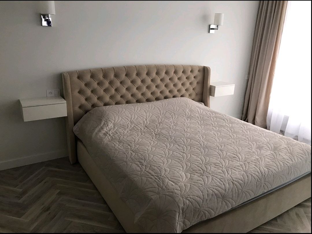 Для просторих кімнат чудово підійдуть моделі з масивним узголів’ям або декоративними елементами — вони стануть акцентом інтер'єру.