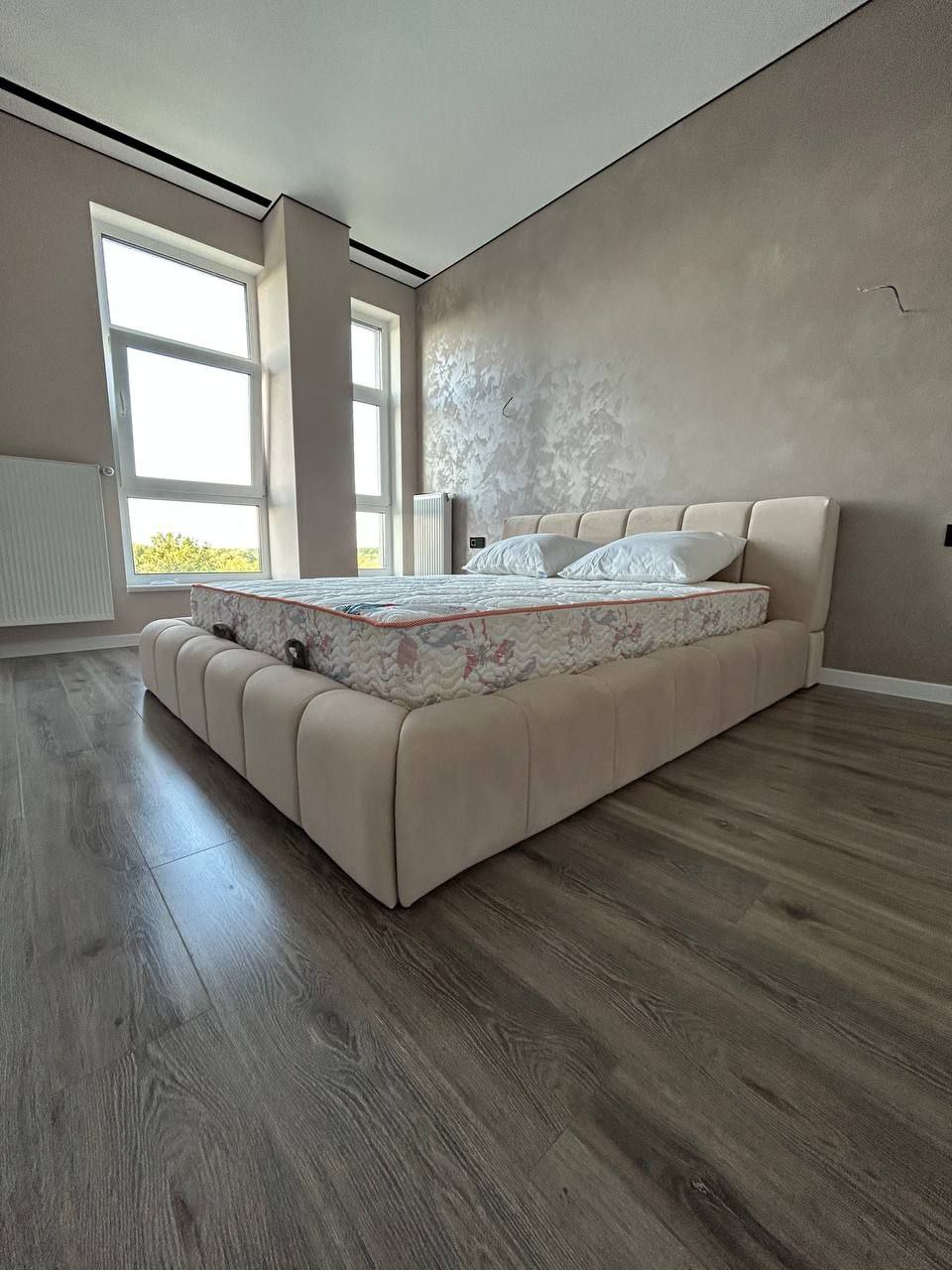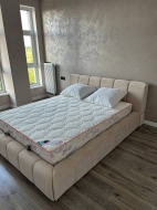 Низьке узголів’я. Висота конструкції становить 850 мм — така висота створює візуальну легкість і дозволяє легко поєднувати ліжко з іншими меблями в спальні.