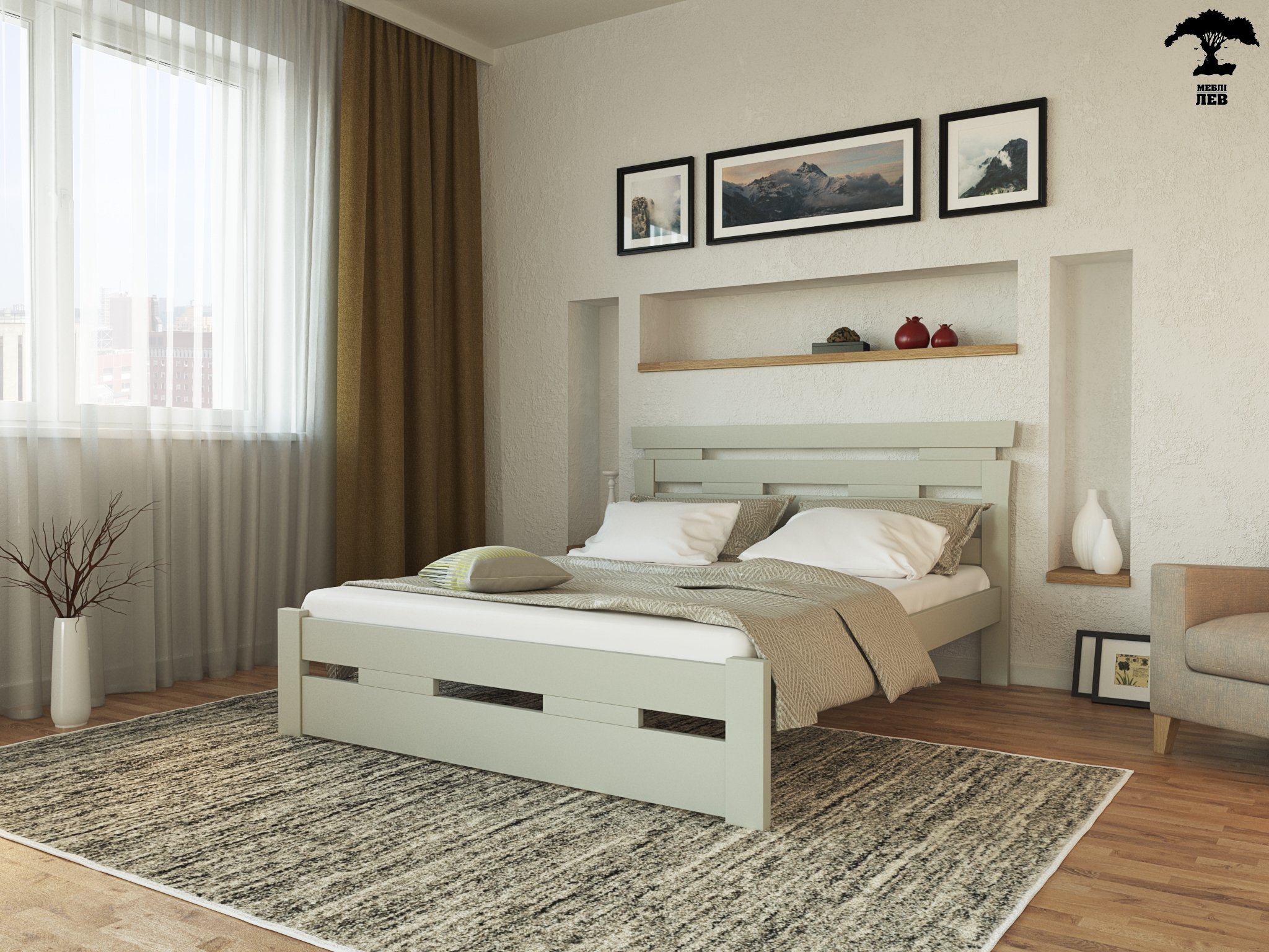 Ліжко дерев'яне Лев Зевс Масив бук Білий