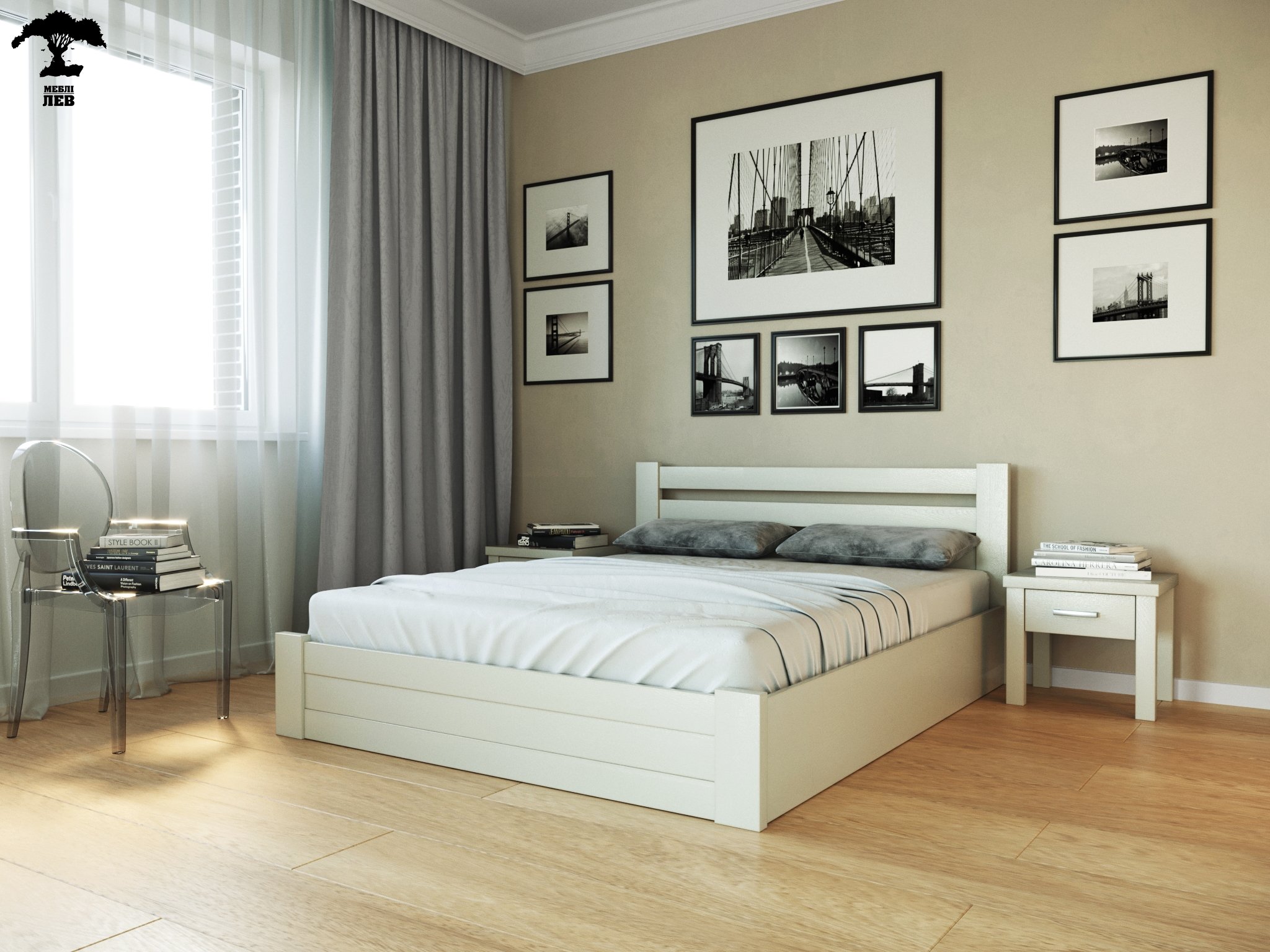 Ліжко дерев'яне Лев Жасмін з підйомним механізмом і нішею для білизни масив Бук Білий