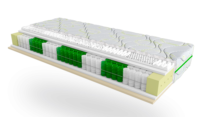 має спеціально розроблену конструкцію, що ділить матрац на сім зон з різною жорсткістю. Кожна зона відповідає за підтримку певних частин тіла, таких як голова, шия, плечі, поперек, стегна, коліна та ноги. Це дозволяє зменшити тиск на чутливі ділянки та забезпечити правильне положення хребта.
