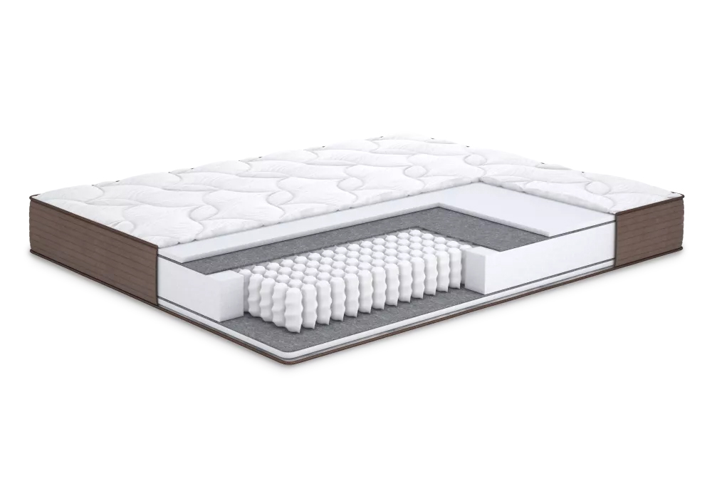 - Використання незалежних пружин у конструкції матраца дозволяє кожній пружині працювати окремо, що забезпечує точкову підтримку та зменшує передачу рухів. Це особливо корисно для пар, оскільки зменшує турбування від рухів партнера під час сну.