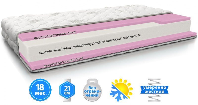 має високу щільність, що забезпечує її міцність і довговічність. Це дозволяє матрацу зберігати свої властивості протягом тривалого часу.