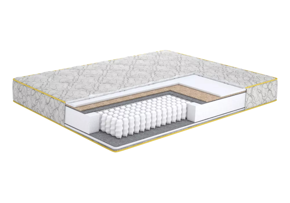- Основним наповнювачем матраца є натуральна кокосова койра, яка забезпечує жорсткість та міцність. Вона сприяє правильному положенню хребта під час сну, зменшуючи навантаження на м'язи та суглоби.