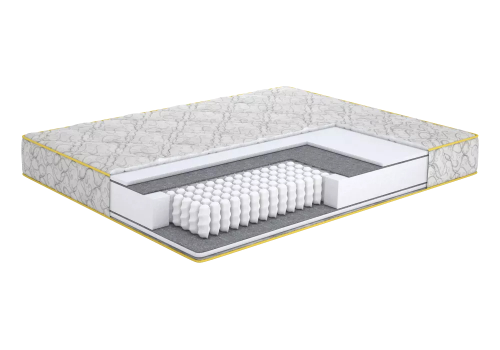 - Спеціально розроблені шари піни та пружинний блок забезпечують рівномірний розподіл навантаження на тіло, підтримуючи правильне положення хребта. Це сприяє зменшенню напруги в м'язах і покращенню якості сну.