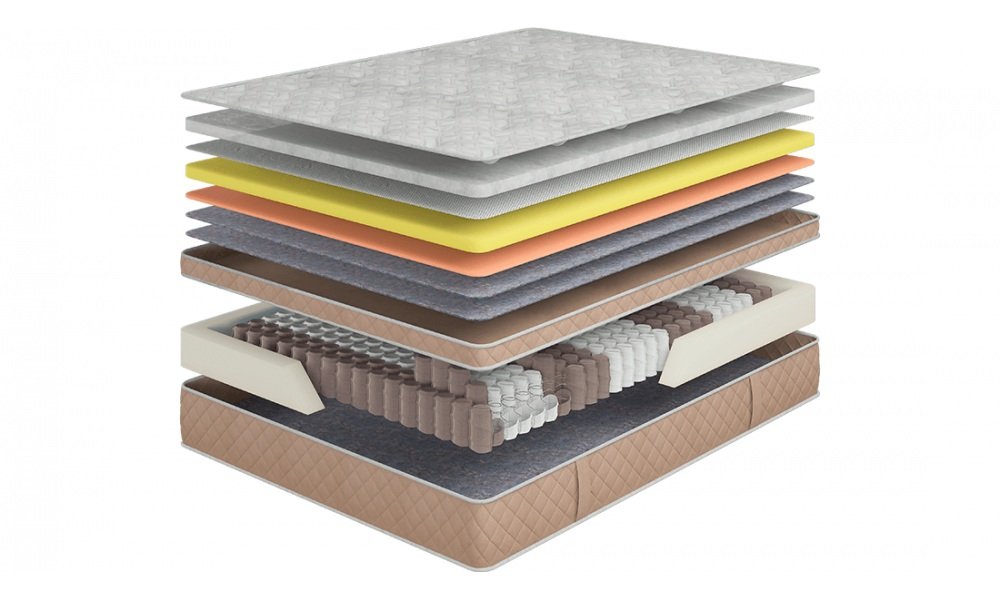 - Матрац складається з декількох шарів, кожен з яких виконує свою функцію. Це забезпечує оптимальну підтримку для всіх частин тіла, зменшуючи тиск на суглоби та покращуючи якість сну.