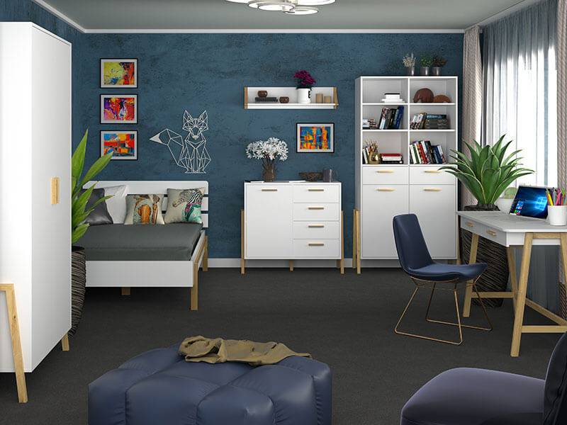 Ліжко, шафа, письмовий стіл, комод, стелаж, приліжкова тумба та навісна полиця формують повноцінні зони для сну, навчання й зберігання. - Якісні матеріали