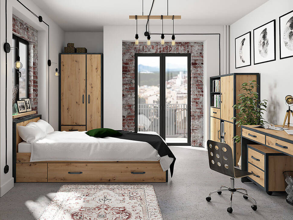 Шафа, навісна полиця, стелаж, ліжко, мобільна тумба, комод і письмовий стіл формують зони для сну, навчання та зберігання. - Якісні матеріали