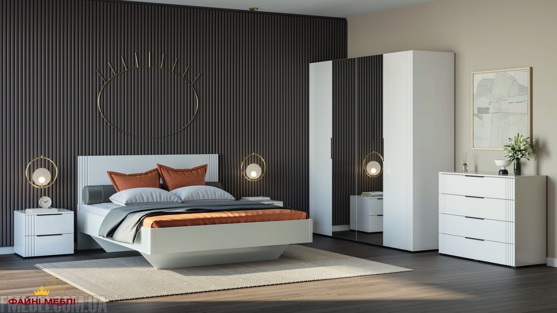 Модульна спальня Амелія — білий мінімалізм із глянцевим сяйвом для по-справжньому сучасного простору.