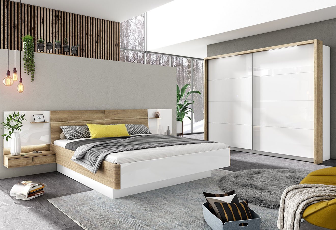 Модульна спальня Барі — модерн, у якому білий глянець зустрічається з теплим дубом для ідеального балансу світла й затишку.
