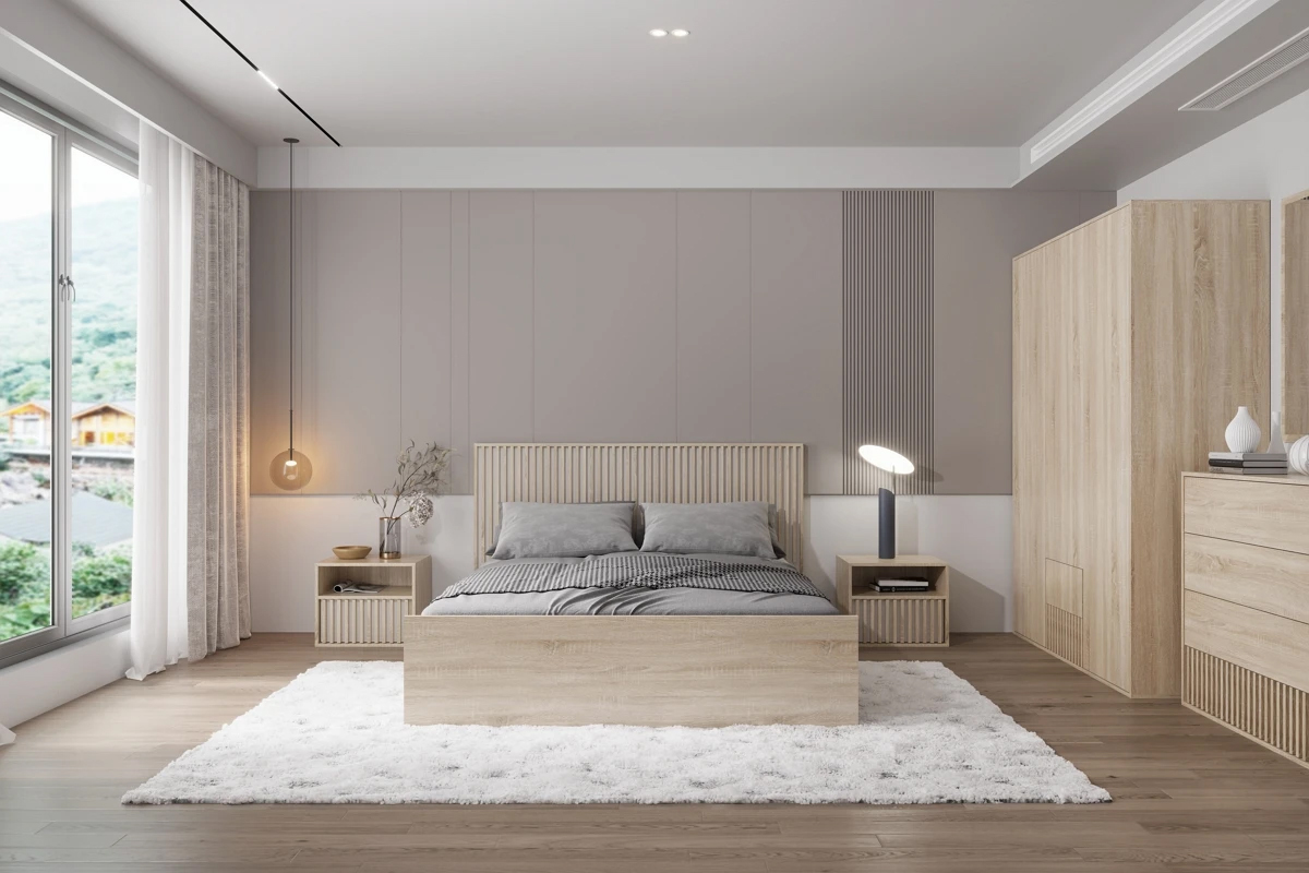 Три елементи дають базу для спальні без зайвих меблів — ідеально для невеликих кімнат або орендованого житла. - Усе найпотрібніше в одному стилі