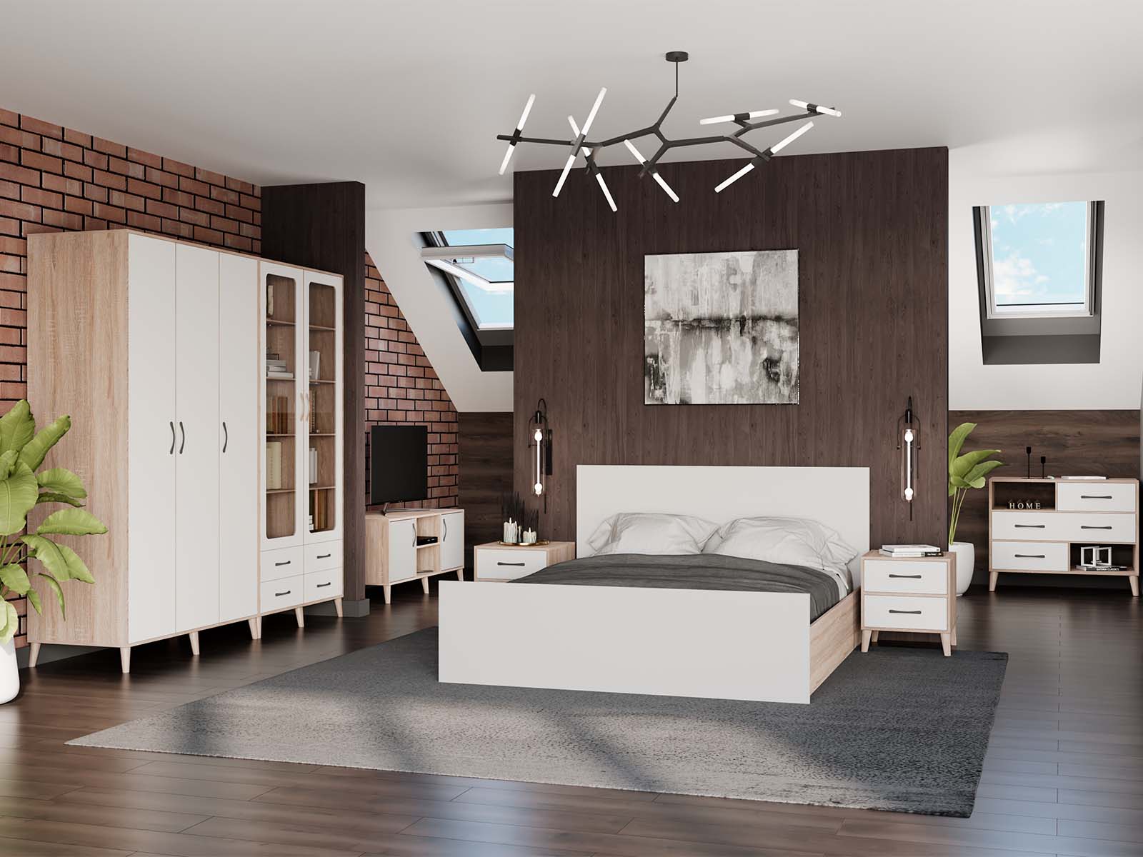 Модульна спальня Фокс поєднує стильний контраст Дуба Сонома та білого супермату, створюючи світлий і водночас теплий інтер’єр для вашої спальні. Прямі лінії та мінімалістичний дизайн додають простору сучасного характеру, а продумана геометрія меблів робить кімнату гармонійною та затишною. Завдяки модульній системі ви легко підберете оптимальну композицію під розмір вашої спальні та власні потреби у зберіганні. Кожен елемент створений для зручності щоденного використання, дозволяючи підтримувати порядок і водночас підкреслювати стиль інтер’єру. Фокс ідеально поєднує красу, функціональність і практичність, роблячи спальню місцем спокою та комфорту. Ця колекція стане надійним вибором для тих, хто цінує сучасний стиль і якість у кожній деталі.